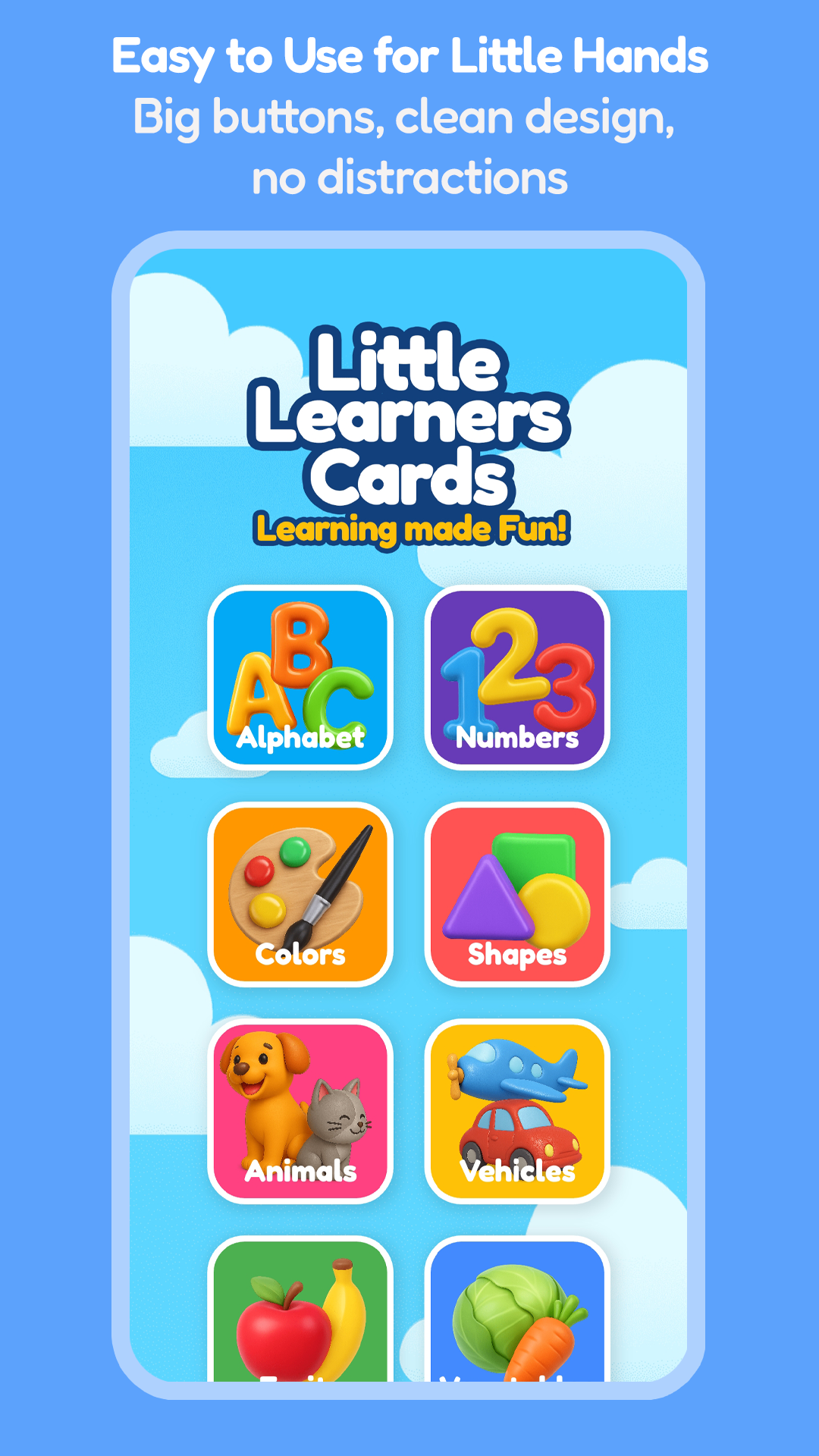 Little Learners Cards is a colorful, kid-friendly flashcard app designed to make early learning fun and interactive! Perfect for toddlers and preschoolers, this app helps children recognize letters, numbers, animals, and more through vibrant images and audio.